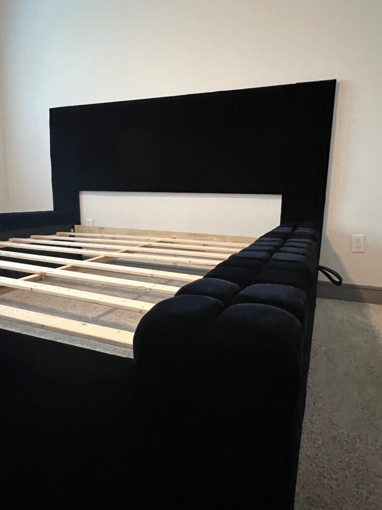 Introducing MILANI, a regal centerpiece of luxury and sophistication. Crafted with black chenille velvet, this king-sized bed radiates opulence and elegance. The sides feature deep storage benches with a special biscuit tufting pattern on the bench tops, adding a touch of grandeur to its design. With its plush upholstery and majestic presence, the Milani bed exudes a sense of royalty, inviting you to indulge in unparalleled comfort and style.